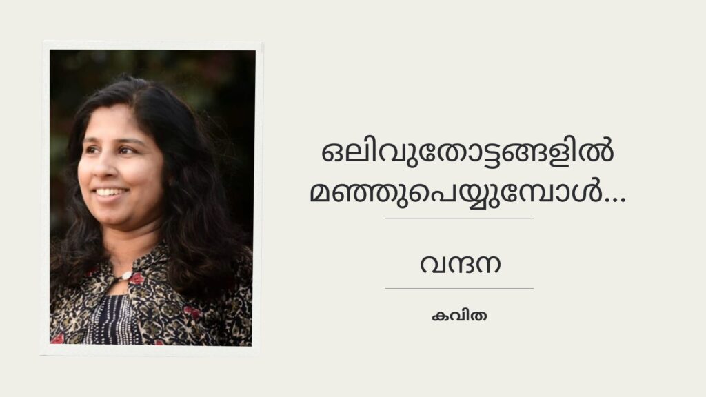 തെരുവിന്നിടനാഴിയിലുയരും, പൊരിയുന്നമാംസത്തിൻ ഗന്ധവും, പേറിവന്നു ശിശിരസന്ധ്യ. ഒരു വേനലെരിഞ്ഞടങ്ങി- യാരോ വലിച്ചെറിഞ്ഞ ധൂപക്കുറ്റി പോൽ. വർഷത്തുള്ളികൾ താണ്ഡവമാടുന്നു വഴികൾ നിറയുന്നു