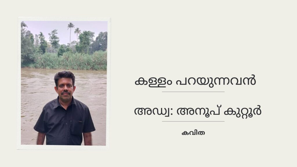 കണ്ടനാളിലേ കള്ളം പറയുവോൻ കഴുത്തിനു ചുറ്റും നാക്കുള്ളവൻ കലമ്പുന്നതിൽകല്ലുവച്ച നുണയാൽ കണ്ടാൽകാളകളിക്കുംനിഷ്കളങ്കൻ. കാലുകുത്തുന്നിടംകുത്തിത്തിരിപ്പാൽ കലഹിപ്പിക്കുവാൻ കേങ്കേമനായവൻ കിട്ടുന്നിടത്തൊക്കെയടിക്കിട്ടുമ്പോൾ കമ്പിനീട്ടുന്നപതിനെട്ടാമടവുമായി. കാർക്കോടകനോ