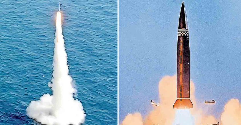 സോൾ ∙ മണിക്കൂറുകളുടെ വ്യത്യാസത്തിൽ ഉത്തര–ദക്ഷിണ കൊറിയകൾ ബാലിസ്റ്റിക് മിസൈൽ പരീക്ഷിച്ചു. ഇന്നലെ പുലർച്ചെ ഉത്തര കൊറിയ 2 ഹ്രസ്വദൂര മിസൈലുകൾ പരീക്ഷിച്ച് മണിക്കൂറുകൾക്കകമാണ്, അന്തർവാഹിനിയിൽ നിന്നു തൊടുക്കുന്ന ആദ്യ ബാലിസ്റ്റിക് മിസൈൽ പരീക്ഷിച്ചതായി ദക്ഷിണ കൊറിയ അറിയിച്ചത്. ഉത്തരകൊറിയയുടെ പരീക്ഷണങ്ങൾക്ക് ദക്ഷിണ കൊറിയ അതേരീതിയിൽ പ്രതികരിക്കുന്നത് അപൂർവമാണ്. ആണവപോർമുന വഹിക്കാൻ ശേഷിയുള്ള 2 ക്രൂസ് മിസൈലുകൾ പരീക്ഷിച്ചതായി ഉത്തരകൊറിയ തിങ്കളാഴ്ച വ്യക്തമാക്കിയിരുന്നു. സൈനിക, ആയുധ ശക്തിയിൽ വരുത്തുന്ന മാറ്റങ്ങളുടെ ഭാഗമാണ് ദക്ഷിണ കൊറിയ ഇപ്പോൾ നടത്തിയ […]