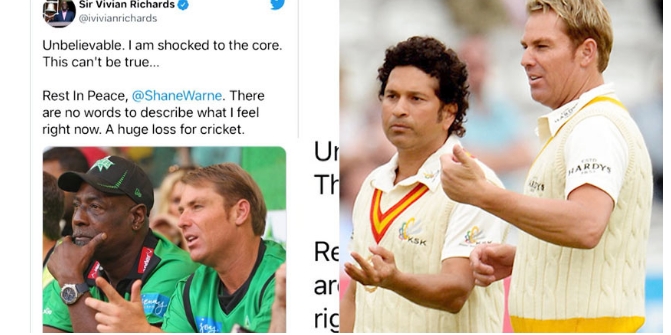 മണിക്കൂറുകളുടെ വിത്യാസത്തിലാണ് രണ്ട് ഇതിഹാസങ്ങളെ ഓസ്ട്രേലിയയ്ക്ക് നഷ്ടമായത്. അവിശ്വസനീയമെന്നാണ് വോണിന്റെ വിയോഗവാര്ത്തയോട് സര് വിവിയന് റിച്ചാര്ഡ്സ് പ്രതികരിച്ചത്. സന്നാഹ മല്സരം നിര്ത്തിവച്ചാണ് ഇംഗ്ലണ്ട് ക്രിക്കറ്റ് ടീം വോണിനോടുള്ള ആദരമറിയിച്ചത്. ഓസീസ്് ഇതിഹാസം റോഡ് മാര്ഷിന്റെ വിയോഗത്തിന്റെ വേദനയൊടുങ്ങും മുമ്പ് കായിക ലോകത്തെ തന്നെ ഞെട്ടിച്ചുകൊണ്ടാണ് 52ാം വയസില് ഷെയ്ന് വോണിന്റെ മരണവാര്ത്തയെത്തുന്നത്. അവിശ്വസനീയം ഇത് സത്യമാകരുതെയെന്ന് ക്രിക്കറ്റ് ആരാധകരെപോലെ വിവിയന് റിച്ചാര്ഡ്സും ആഗ്രഹിച്ചു. താങ്കള് സമ്മാനിച്ച നിമിഷങ്ങള്ക്ക് കടപ്പെട്ടിരിക്കുന്നുവെന്ന് ഓസീസ് നായകന് പാറ്റ് കമ്മിന്സ്. അതീവദുഖം രേഖപ്പെടുത്തി […]