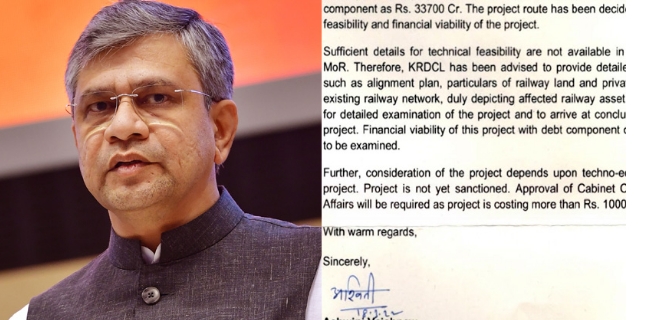 സില്വര്ലൈന് അംഗീകാരം നല്കിയിട്ടില്ല; നിലവിലെ ഡിപിആര് അപൂര്ണം: റെയില്വേ മന്ത്രി