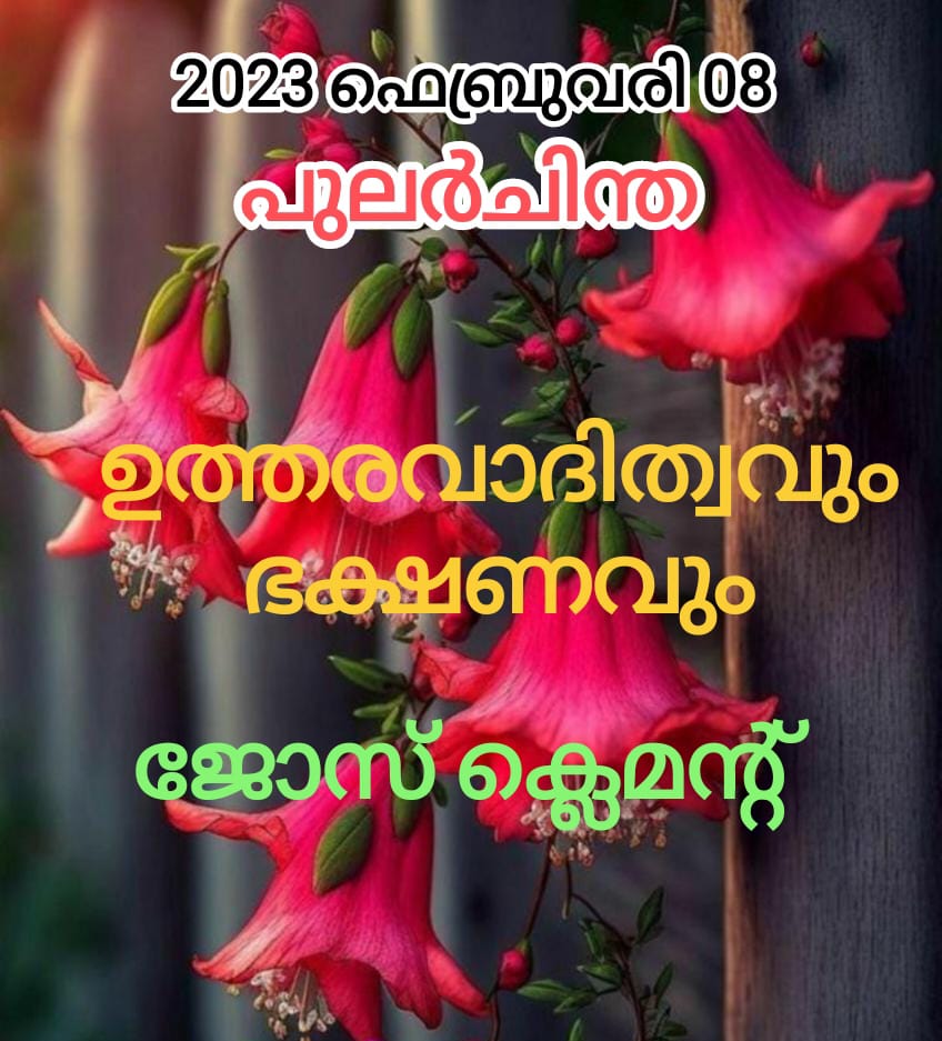 ഭക്ഷണം നമ്മുടെ ശരീരത്തിന് എത്രമാത്രം അത്യാവശ്യമാണോ അതേപോലെ നമ്മുടെ സ്വഭാവത്തിൽ അത്യന്താപേക്ഷിതമായ ഒരു അനിവാര്യഘടകമാണ് ഉത്തരവാദിത്വം. അതിനാൽ ഉത്തരവാദിത്വവും ഭക്ഷണവും തൃപ്തി എന്ന വാക്കുമായി ചേർത്തു വായിക്കണം. നമ്മെ ഏല്പിച്ച ജോലി ഉത്തരവാദിത്വത്തോടെയും കൃത്യതയോടെയും ചെയ്തു തീർക്കുന്നതും നാം ഭക്ഷണം കഴിച്ച് വിശപ്പടക്കുന്നതും തൃപ്തിയുടെ ഉത്തുംഗത്തിലാണ്. നമ്മുടെ ജീവിതത്തിന്റെ എല്ലാ മേഖലകളിലും ഈ വാക്യം ചേർന്നു പോകുന്നതാണ്. നിരുത്തരവാദപരമായ ജീവിത രീതിയും അത്യാർത്തിയും നമ്മിൽ എന്തു പ്രതിഫലിപ്പിക്കുമെന്ന് അനുഭവങ്ങളിലൂടെ നാം വിലയിരുത്തിക്കഴിഞ്ഞാൽ നമ്മുടെ അജീർണാവസ്ഥയും അവിശ്വസ്ഥതയും നമുക്ക് […]