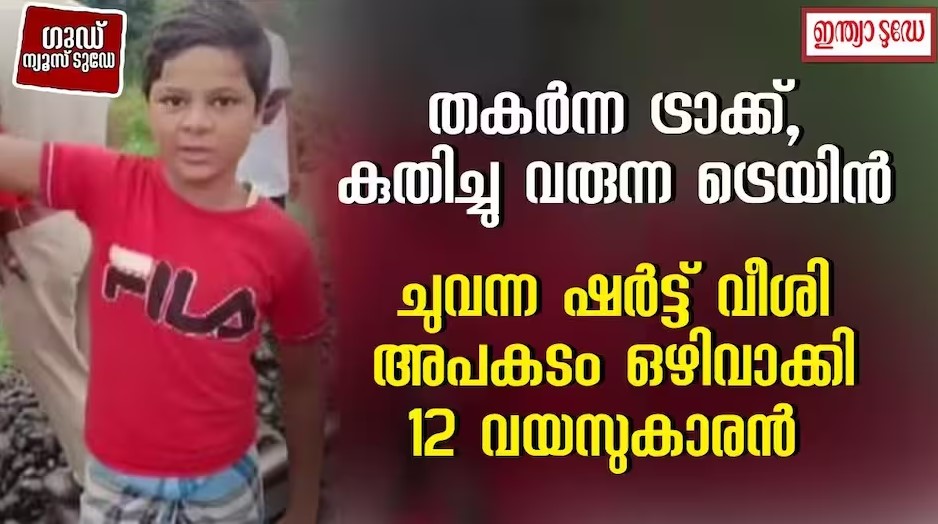 തകർന്ന ട്രാക്ക്, കുതിച്ചു വരുന്ന ട്രെയിൻ; ചുവന്ന ഷർട്ട് വീശി അപകടം ഒഴിവാക്കി 12 വയസുകാരൻ