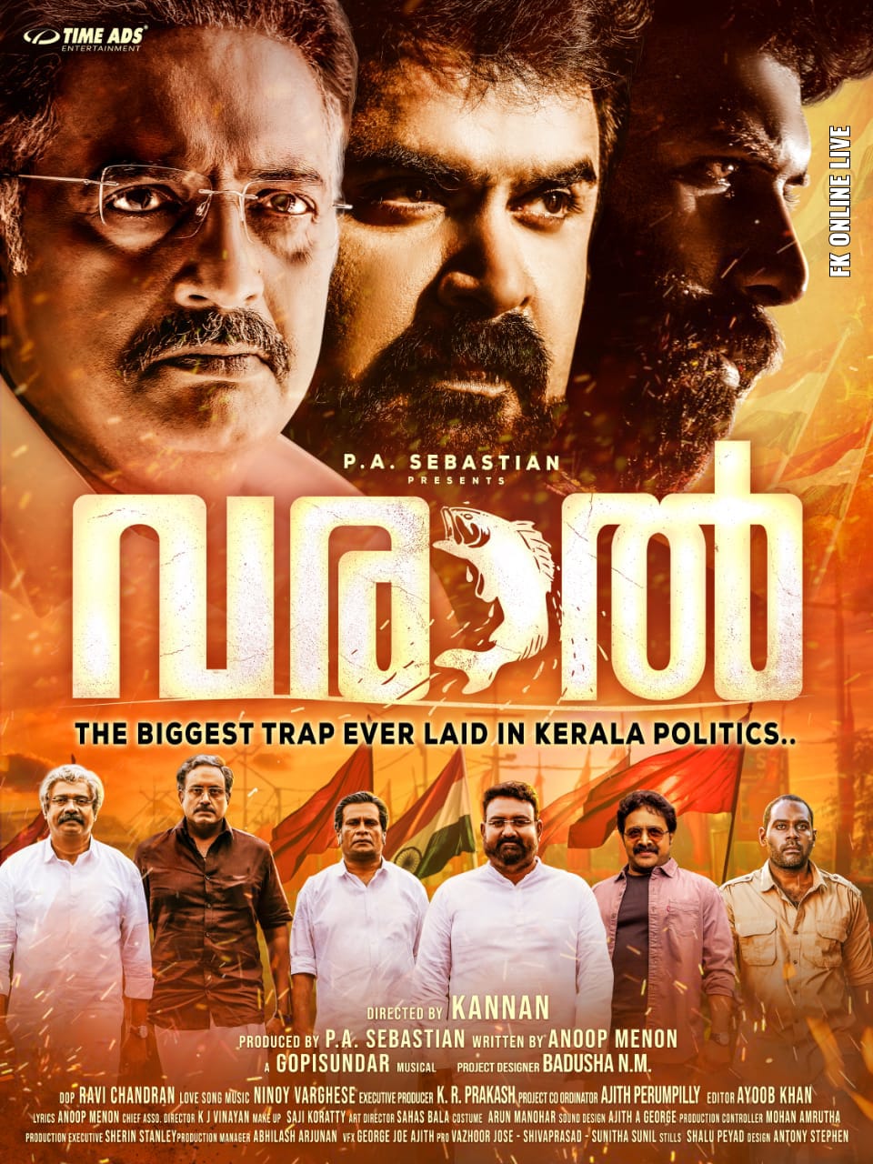 അനൂപ് മേനോൻ, പ്രകാശ് രാജ്, സണ്ണി വെയ്ൻ എന്നിവരെ കേന്ദ്ര കഥാപാത്രങ്ങളാക്കി കണ്ണൻ സംവിധാനം ചെയ്യുന്ന പൊളിറ്റിക്കൽ ത്രില്ലർ ചിത്രം ആണ് ‘വരാൽ’. ചിത്രത്തിൻ്റെ ഫസ്റ്റ് ലുക്ക് പോസ്റ്റർ പുറത്തിറങ്ങി. 20-20 എന്ന എക്കാലത്തെയും ഹിറ്റ് ചിത്രത്തിനു ശേഷം മലയാളത്തിൽ അൻപതോളം വരുന്ന തെന്നിന്ത്യയിലെ മുഖ്യധാര കലാകാരന്മാരെ ഉൾപ്പെടുത്തി പുറത്തിറങ്ങുന്ന ചിത്രമായിരിക്കും ‘വരാൽ’. ഫസ്റ്റ് ലുക്ക് പോസ്റ്ററിൽ അനൂപ് മേനോൻ, പ്രകാശ് രാജ്, സണ്ണി വെയ്ൻ എന്നിവരെ കൂടാതെ നന്ദു, സുരേഷ് കൃഷ്ണ, ഹരീഷ് പേരടി, രഞ്ജി പണിക്കർ, സെന്തിൽ കൃഷ്ണ, ശങ്കർ രാമകൃഷ്ണൻ എന്നിവരുടെ വ്യത്യസ്തമായ മുഖങ്ങളാണ് പ്രേക്ഷകരിലേക്കെത്തുന്നത്. ഫസ്റ്റ് ലുക്ക് പോസ്റ്ററിൽ തന്നെ വരാൽ എന്ന ചിത്രം രാഷ്രീയ നിഗൂഢതകളായിരിക്കും കൈകാര്യം ചെയ്യുന്നത് അനുമാനിക്കാം.