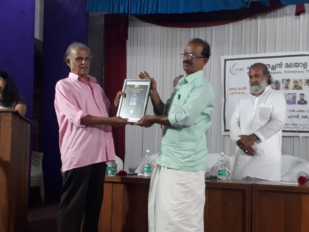 എന്റെ’ തീൻമേശയിലെ കലഹങ്ങൾ’ എന്ന കൃതിക്ക് വിമർശനാത്മക ലേഖനത്തിനുള്ള എഴുത്തച്ഛൻ മലയാള സാഹിതി പ്രത്യേക ജ്യംറി പുരസ്കാരം ലഭിക്കുകയുണ്ടായി. അക്കാദമി അവാർഡു ജേതാവായ പള്ളിയറ ശ്രീധരൻ , ബാലസാഹിത്യകാരൻ സി.ആർ ദാസ് , കവികൾ പവിത്രൻ തീക്കുനി,സോമൻ കടലൂർ, സിനിമാ സംവിധായകൻ സലാം ബാപ്പു, നടൻ വത്സൻ നെല്ലിക്കോട്, എഴുത്തുകാർ റഷീദ് പാനൂർ , സിദ്ധാർത്ഥ് അടക്കമുള്ളവർ നിറഞ്ഞ പ്രൗഢമായ ചടങ്ങിലായിരുന്നു പുരസ്കാര വിതരണം. മഹാരഥൻമാരുടെ പ്രഭാഷണങ്ങൾക്കും എസ്സ്.കെ.പൊറ്റക്കാട് തുടങ്ങിയവരുടെ അന്ത്യ യാത്രയ്ക്കും സാക്ഷിയായ കോഴിക്കോട് ടൗൺഹാളിൽ വച്ച് ചിങ്ങം ഒന്നിനായിരിന്നു ചടങ്ങ്.