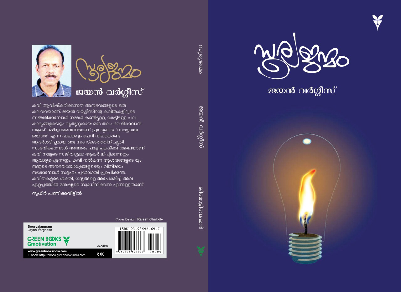 നാട്ടിൽ വച്ചേ നാടക കൃത്തും നാടക പ്രവർത്തകനുമായിരുന്ന ശ്രീ ജയൻ വർഗീസ് അമേരിക്കയിൽ എത്തിയശേഷം ശ്രദ്ധേയങ്ങളായ ലേഖനങ്ങളും, കവിതകളും, നർമ്മ കഥകളും ഇവിടുത്തെ മലയാള മാധ്യമങ്ങളിൽഎഴുതിക്കൊണ്ടാണ് തന്റെ സാന്നിധ്യം അറിയിച്ചിരുന്നത്. ഇപ്പോൾ നൂറു കവിതകളുടെ സമാഹാരമായ “ സൂര്യജന്മം “ ഗ്രീൻ ബുക്സ് പുറത്തിറക്കിയതിലൂടെ ആ സാന്നിധ്യം കുറേക്കൂടി ശക്തമായിരിക്കുകയാണ്.