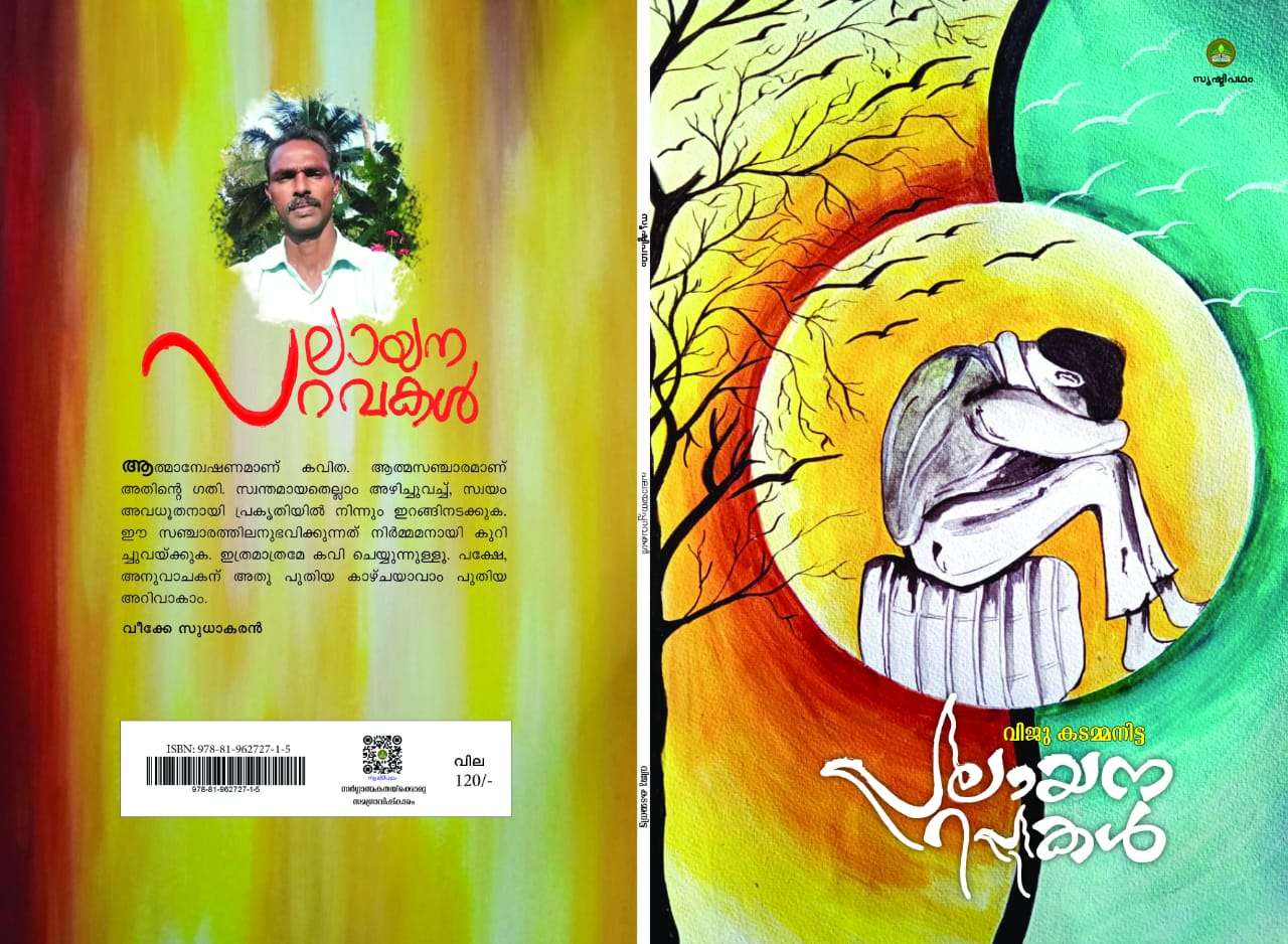പലായനപ്പറവകൾ എന്ന എന്റെ ആദ്യ കവിതസമാഹാരം ഇപ്പോൾ വായനക്കാരിലേക്കും കാവ്യ സാഹിത്യ ആസ്വാദകരിലെയ്ക്കും എത്തിച്ചുകൊണ്ടിരിക്കുന്നു. എന്റെ ചൊല്ക്കവിതകൾ അധികവും ഉൾപെടുത്തിയ ഈ കവിത സമാഹാരം വാങ്ങണമെന്നും മുന്നോട്ടുള്ള യാത്രയിൽ എന്റെ കരുത്തായും കൈത്താങ്ങാകണമെന്നും വിനീതമായി അഭ്യർത്ഥിക്കുന്നു. പലായനപ്പറവകളുടെ പോസ്റ്റൽ ചാർജ് ഉൾപ്പെടെ കോപ്പി ഒന്നിന് 150രൂപ വിലവരും വാട്ട്സാപ്പിലോ മെസഞ്ചർ വഴിയോ അഡ്രസ്സ് തരികയും 7902482112 എന്ന നമ്പറിൽ ഗൂഗിൾ പേ ചെയുകയും ചെയാം… നിങ്ങളുടെ സഹകരണമായിരുന്നു, പ്രോത്സാഹനം ആയിയുന്നു ഇതുവരെയുമുള്ള എന്റെ ആകെ ശക്തി എന്നും അറിയിച്ചുകൊള്ളുന്നു എന്ന് സ്നേഹപൂർവ്വം വിജു കടമ്മനിട്ട