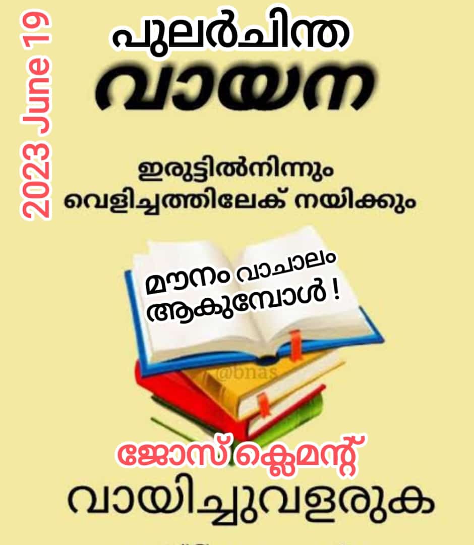 അറിവിന്റെ ഒരായിരം നക്ഷത്ര ദീപങ്ങൾ തെളിഞ്ഞാലെന്നപോലെ പ്രകാശം പകരുന്ന , ഊർജം നിറയ്ക്കുന്ന ഒന്നാണ് വായന.വായനയുടെ മൗനത്തിൽ നാം എവിടെയെല്ലാം സഞ്ചരിക്കുന്നു! ആരെയെല്ലാം കണ്ടുമുട്ടുന്നു!എത്രയോ പേരെ ഇഷ്ടപ്പെടുന്നു! ആരൊക്കെയോ ആകാൻ ശ്രമിക്കുന്നു! എങ്ങനെയൊക്കെ ആകരുതെന്ന് പഠിക്കുന്നു! ഒരു ജന്മത്തിൽ തന്നെ, നിരവധി ജന്മങ്ങളെ സൃഷ്ടിക്കുക വഴി പരിമിതമായ മനുഷ്യ ജീവിതത്തിന് ഒരു പ്രപഞ്ചമാനം തന്നെ വായന നല്കുന്നു. വായിക്കുക എന്നാൽ വേരിലേക്ക് താഴ്ന്നും പൂവുകളിലേക്ക് പടർന്നും മറ്റുള്ളവരിലേക്ക് കുതിച്ചും നാം നടത്തുന്ന അതിജീവനമാണ്. “വായിക്കുന്നവർ ആയിരം ജീവിതം ജീവിക്കുന്നു. ഒരിക്കലും വായിക്കാത്തവൻ ഒരു ജീവിതം മാത്രം ജീവിക്കുന്നു ” എന്ന ജോജന്റെ വാക്കുകൾ ഈ ദിനത്തിൽ നമ്മെ ചിന്തിപ്പിക്കട്ടെ. എഴുത്തിന്റെ മൗനങ്ങളെയും വൈരുധ്യങ്ങളെയും വെളിപ്പെടുത്തും വിധമുള്ള ഒരു സർഗ പ്രവർത്തനമായി നമ്മുടെ വായനകൾ മാറട്ടെ .