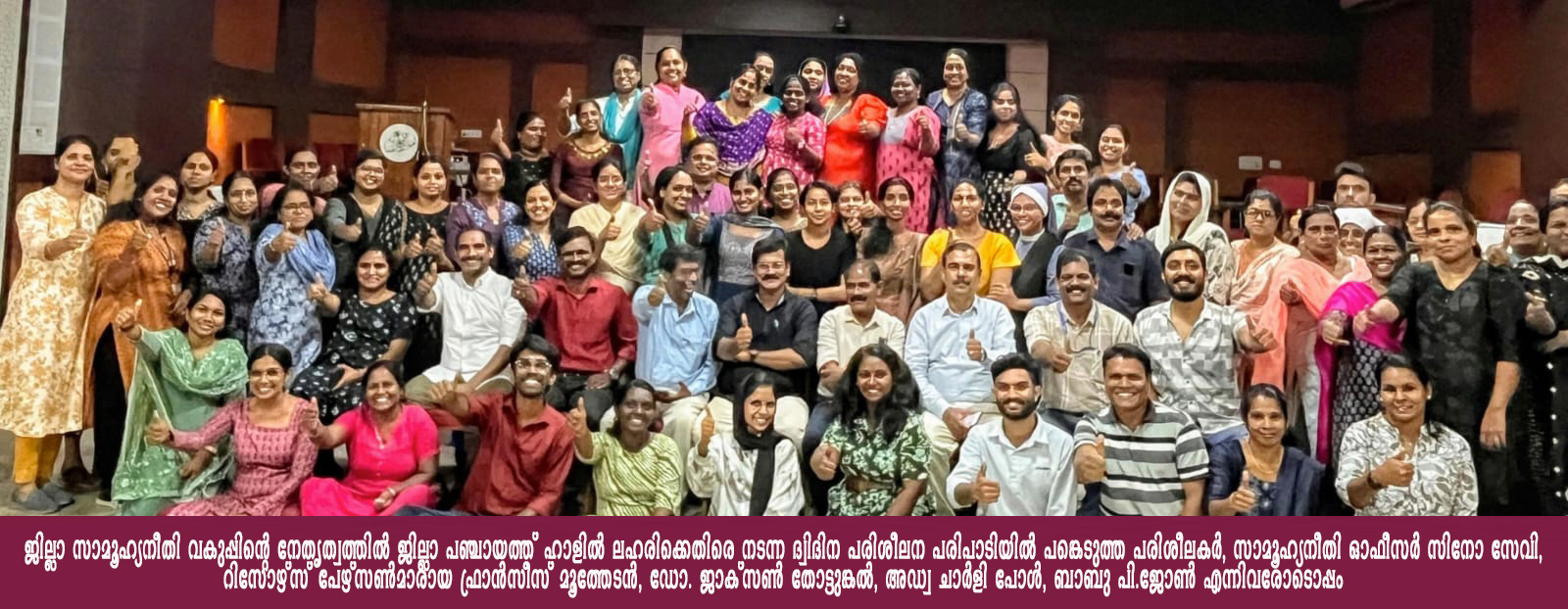 കാക്കനാട്: രാജ്യത്തെ ലഹരി മുക്തമാക്കുക എന്ന ലക്ഷ്യത്തോടെ ജില്ലാ ഭരണകൂടത്തിന്റെയും ജില്ലാ സാമൂഹ്യനീതി വകുപ്പിന്റെയും സംയുക്താഭിമുഖ്യത്തില് ജില്ലാ പഞ്ചായത്ത് ഓഡിറ്റോറിയത്തില് നടന്നുവന്ന ദ്വിദിന പരിശീലന പരിപാടി സമാപിച്ചു. ജില്ലാ സാമൂഹ്യനീതി ഓഫീസര് സിനോ സേവി സമാപനസന്ദേശം നല്കി.