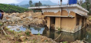 നിലം പൊത്തിയ വീടുകളുടെ അവശിഷ്ടങ്ങളും കല്ലുകളും പാറക്കൂട്ടങ്ങളും കുന്നു കൂടി കിടക്കുന്നു. നദീജലംമാലിന്യങ്ങ ൾ കൊണ്ടു മലിനമായിരിക്കുന്നു.