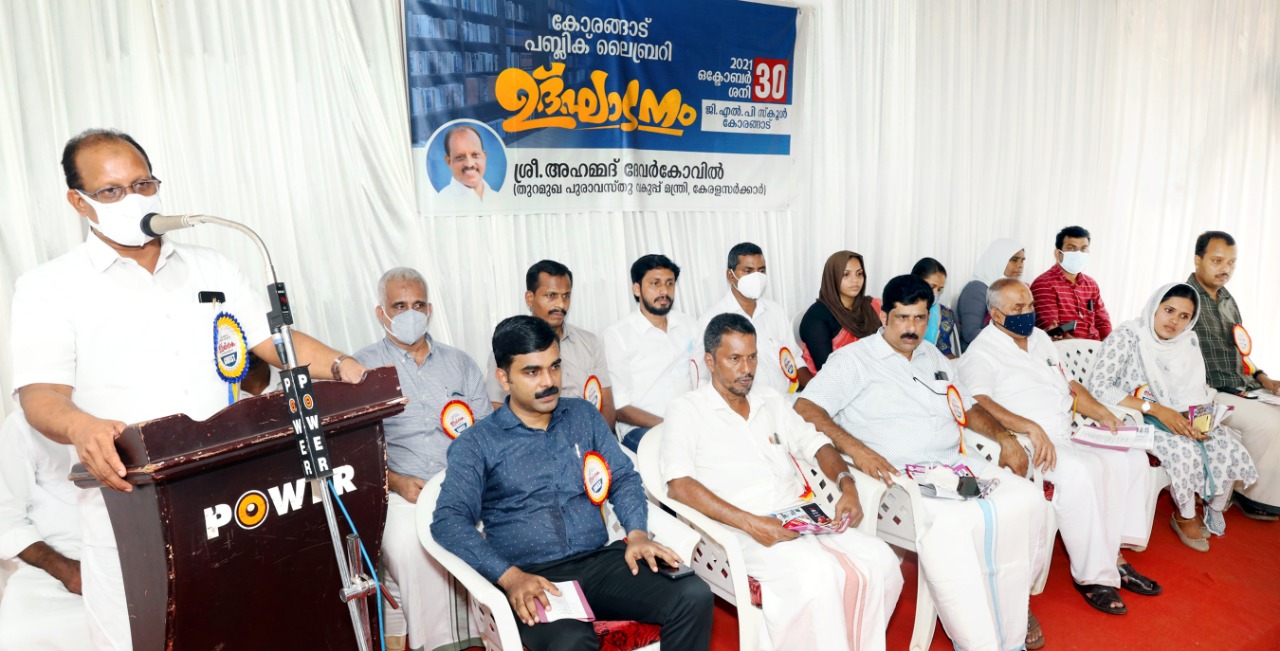താമരശ്ശേരി :പുസ്തക വായന മരിക്കുന്നുവെന്ന് ആശങ്കപ്പെടുന്ന കാലഘട്ടത്തില് കോരങ്ങാട് ലൈബ്രറി തുടങ്ങുന്നുത് അഭിനന്ദനാർഹമാണെന്നും മന്ത്രി അഹമ്മദ് ദേവർകോവിൽ! കോരങ്ങാട് പബ്ലിക് ലൈബ്രറി ഉദ്ഘാടനം ചെയ്തു കൊണ്ട് സംസാരിക്കുകയായിരുന്നു അദ്ദേഹം. ഓൺലൈൻ പഠന വ്യവസ്ഥയിൽ സമൂഹം മൊബൈല് ലൈബ്രറിയെ കുറിച്ച് ചിന്തിക്കേണ്ട സമയമാണ്. താമരശ്ശേരിയിലെ വിദ്യാഭ്യാസ സ്ഥാപനങ്ങളുടെ കേന്ദ്രം ആയതിനാൽ കോരങ്ങാട് ഫോണുകളുടെ ലൈബ്രറി തുടങ്ങുന്നതിനെക്കുറിച്ച് സംഘാടകർ ഗൗരവപരമായി ആലോചിക്കണ മെന്നും, വായിക്കണം എന്ന കൽപ്പനയാണ് എല്ലാ മതങ്ങളുടെയുംഅടിസ്ഥാന പരമായ ആശയം എന്നും അദ്ദേഹം കൂട്ടിച്ചേർത്തു , ചടങ്ങിൽ ലൈബ്രറി കമ്മറ്റി പ്രസിഡന്റ്